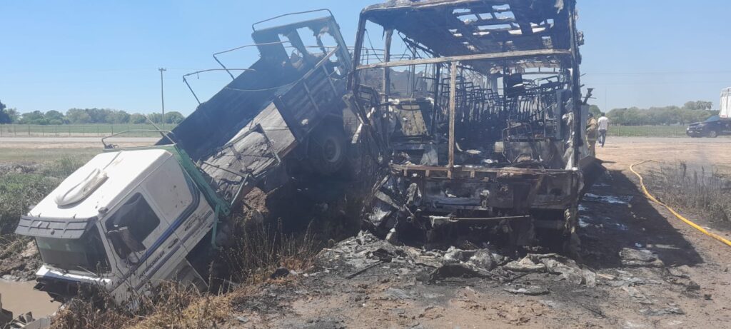 El accidente ocurrió cerca de las 13 hs., donde un micro de la Empresa Paraná Medio, cargado de pasajeros, entró en colisión con un camión, que circulaba en el mismo sentido – sur – norte.Ocho pasajeros del micro, siete mayores y un menor sufrieron heridas leves y fueron trasladados al hospital Rawson.