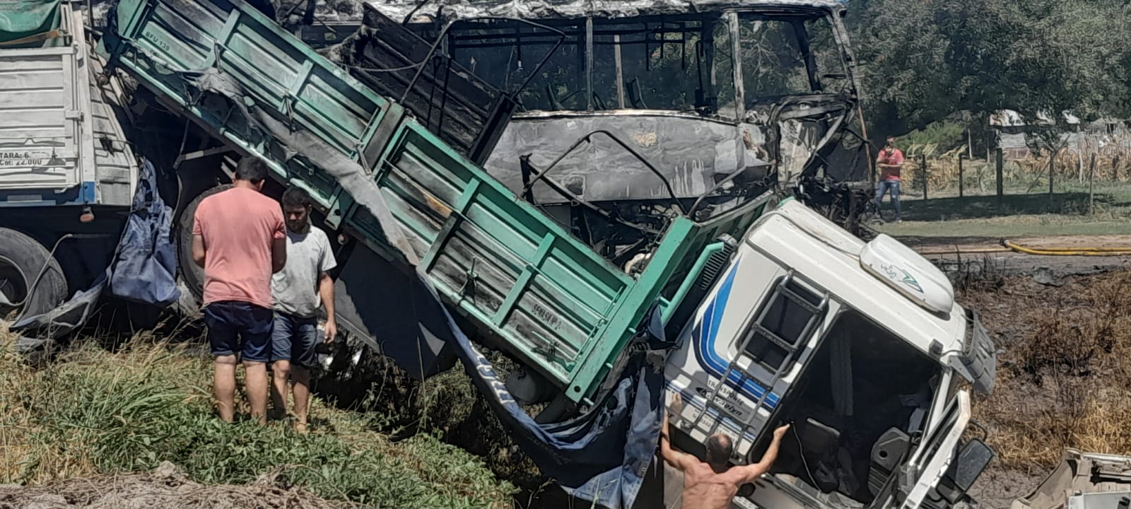 El accidente ocurrió cerca de las 13 hs., donde un micro de la Empresa Paraná Medio, cargado de pasajeros, entró en colisión con un camión, que circulaba en el mismo sentido – sur – norte.Ocho pasajeros del micro, siete mayores y un menor sufrieron heridas leves y fueron trasladados al hospital Rawson.