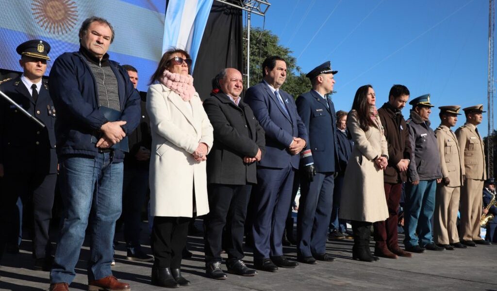 Uno de los momentos más emotivos fue la promesa de lealtad a la Bandera por parte de los estudiantes de 4º grado, con palabras a cargo de la directora Sandra Melgarejo y la lectura del compromiso por parte del Intendente y el presidente del Centro de Ex Combatientes, Juan Carlos Vidal.