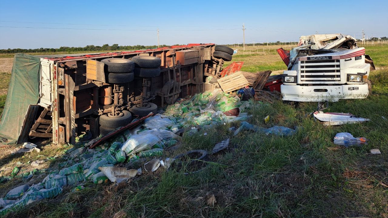 Maragarita: mirá los videos del vuelco de un camion, el chófer de Avellaneda quedó atrapado